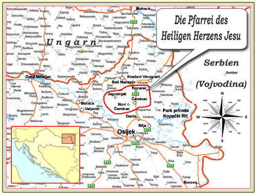 Wer und was sind wir? Die Pfarrei des Allerheiligsten Herzens Jesu wurde 1789 durch Trennung von der Pfarrei Darda gegründet. ..... Bis 1945 bilden die Deutschen die Mehrheit der Einwohner, sowie auch die Ungaren und Serben. Nach dem Ende des Zweiten Weltkrieges wurde die deutsche Bevölkerung ausgetrieben. Sie haben aber bis heute die Verbindung mit der alten Heimat nicht verloren. Zu dieser Zeit bevölkern die Kroaten, meistens aus Zagorje und Meðimurje, das Gebiet der Pfarrei, und sie bilden bis heute die Mehrheit der Bewohner. Kurz vor dem Krieg in Kroatien („Heimatkrieg“) wurde die Renovierung der Pfarrkirche beendet. Die Kirche wurde am 2. September 1990 eingeweiht. Während des Heimatkrieges wurde die Pfarrgemeinde zusammen mit dem Pfarrer ausgetrieben und die Pfarrkirche des Heiligsten Herzens Jesu bis zur letzten Mauer verbrannt. Die Rückkehr erfolgte im Jahr 1998 durch den Prozess der friedlichen Reintegration in Baranja und Ost-Slawonien. Die renovierte Kirche wurde am 17. Juni 2007, am 100. Jubiläumstag ihres Aufbaus eingeweiht. Die Filialkirche St. Emerik (Der Gute Schäfer) in Kozarac und die Filialkirche St. Vendelin in Jagodnjak wurden auch im Krieg devastiert. Nach der Rückkehr hat man begonnen, auch diese zwei Kirchen zu renovieren. Der Pfarrer und Ehrenkanoniker des Kathedralkapitels Djakovo und Srijem, Josip Varžiæ, ist nach 43 Jahren Verwaltung der Pfarrei an Folgen eines Schlaganfalls gestorben und wurde am Friedhof in Èeminac am 03. Juni 2008 begraben. Zum neuen Pfarrer wurde Dinko Kalmar am 17. August 2008 ernannt.
